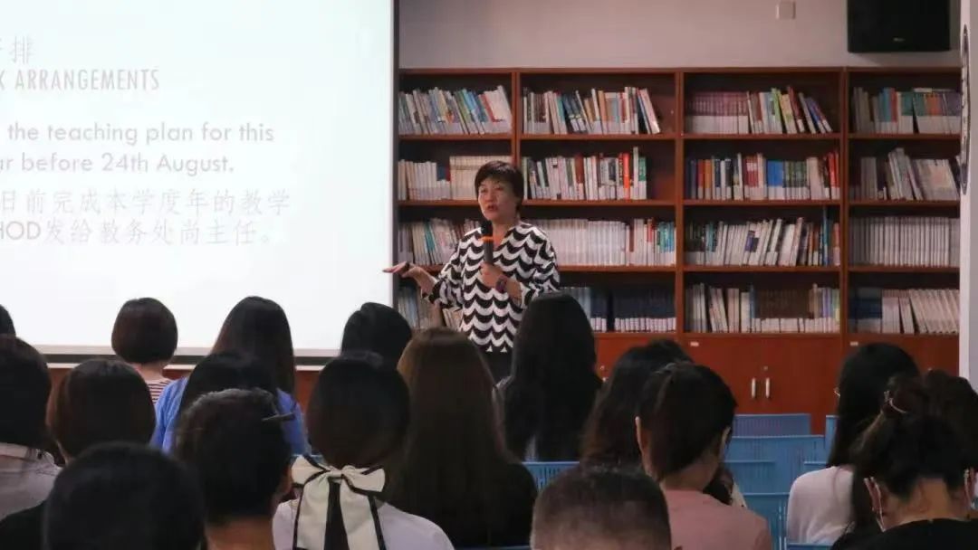 副校长郑赋琦就国际大考成绩、教学常规、教师评估、开学准备四个部分做了布置。就上学年的国际大考成绩,各教研组应在教学准备周开展数据与质量分析,总结优势经验,探讨提升空间确保新学年教学工作更上一个台阶。