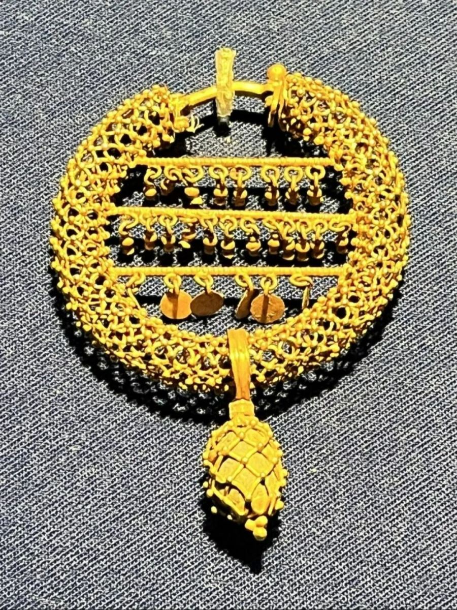 波斯金属器,如金银杯、盘、壶等,展示了高超的加工技艺和审美观念,常见图案包括神话生物、花卉和几何图形。陶器方面,波斯陶器以多样的形态和复杂的装饰技法闻名,提供了丰富的社会生活、宗教仪式和文化习俗信息。波斯的珠宝工艺精湛,制作精美,常融合希腊、埃及等文化元素,显示了波斯在古代国际贸易中的重要地位和文化包容性。