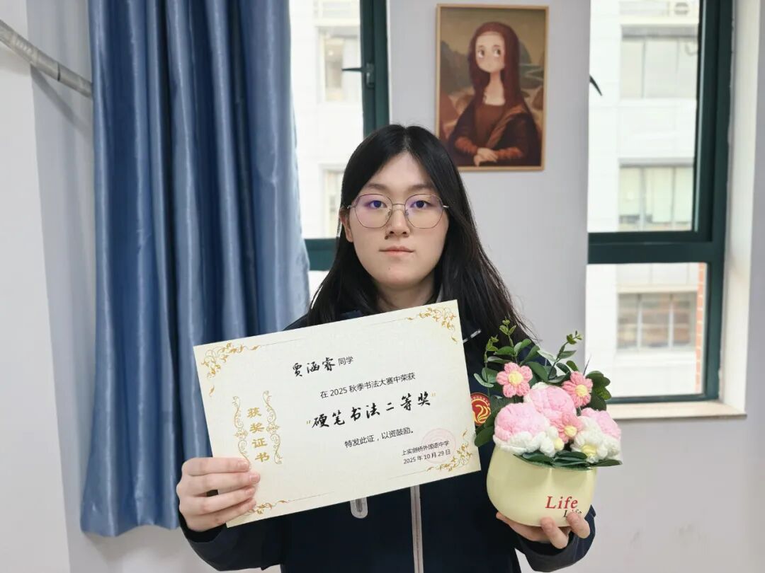 中文硬笔,笔锋刚劲,架构严谨;英文书写,流畅优雅,自带国际风度。10月14日举办的英语硬笔书写大赛现场,同学们以笔为桥,连接东西文明。字如其人,迹载其心。规范的书写不仅提升了学习品质,更在横竖撇捺间培养了审美能力,修炼了从容心境。参赛作品或工整清秀,或洒脱流畅,展现了同学们扎实的语言功底与独特的艺术个性,彰显上实学子立足传统、放眼世界的文化自信。
