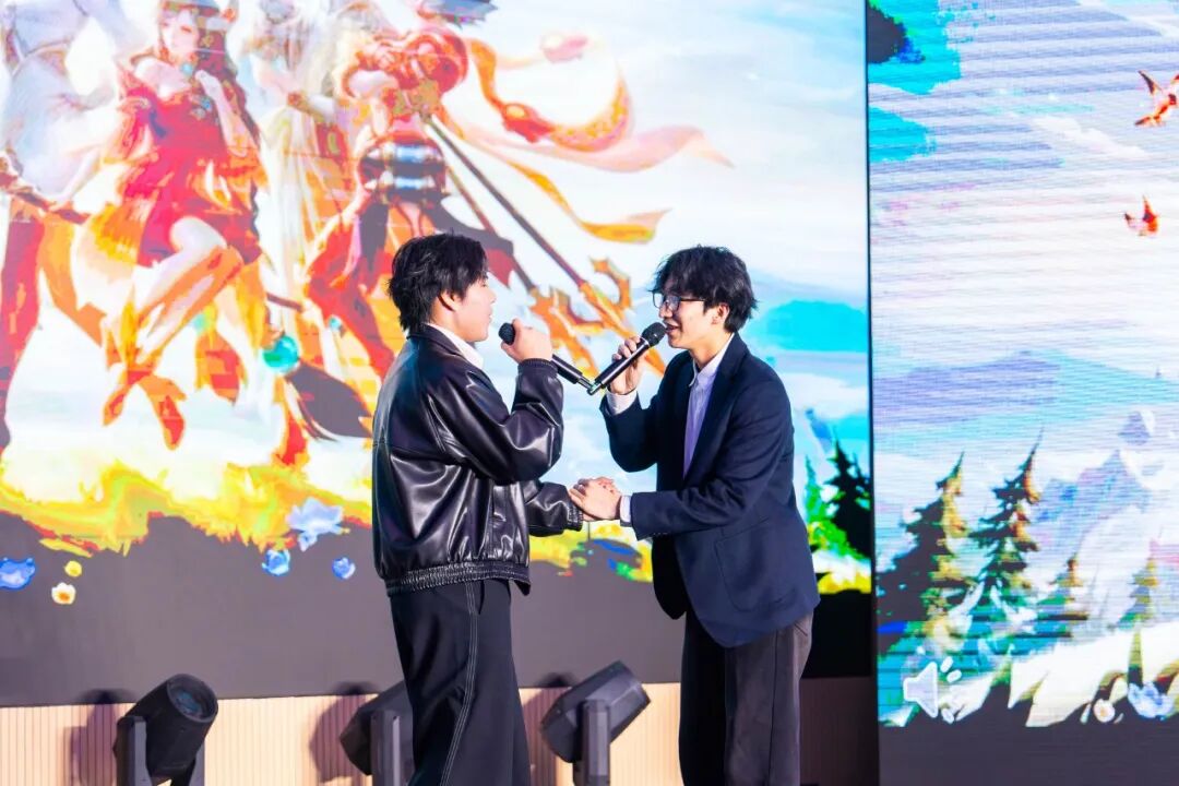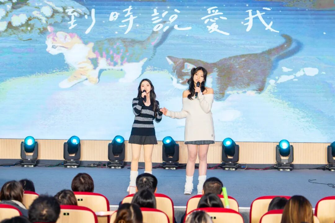 中场休息时间也同样精彩,学生会两位主席为同学们组织了一场轻松有趣的猜歌互动。