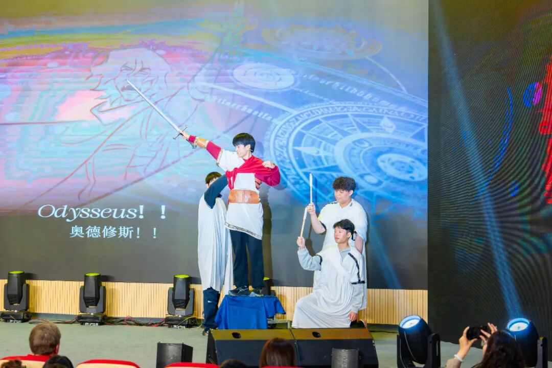 上半场的压轴节目,由G2-7班全体同学倾力呈现,他们演绎了音乐剧《Epic》中的选段《God Games》。复杂的剧情编排、投入的角色塑造、精美的服装道具,以及全班同学默契的舞台配合,展现了班级强大的凝聚力与创造力,为上半场演出画上一个震撼的句号。