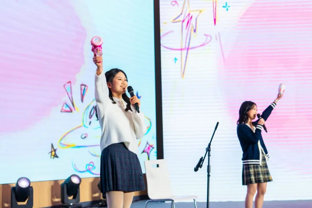 “爱要及时,更要勇敢表达。”A2-6班王沁彤与G2-9班徐浠娜带来的合唱《到时说爱我》,以清澈的声线诠释了青春期中那份含蓄而真挚的情感。杨瑷宁、徐昕妍、李清然、周显知、刘思羽等多位同学联袂献唱《走在路上突然收到了快乐邀请》,轻快的旋律与绽放的笑容感染全场。