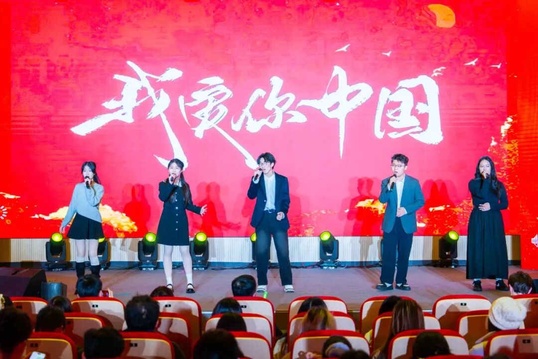 晚会临近尾声,由杜思远、翟浩、张芳瑜、范羽嘉、汪欣怡同学带来的合唱《我爱你中国》,气势恢宏,澎湃如潮。他们的歌声里既有山河壮阔的磅礴,也有赤子之心的滚烫。浓浓的爱国热情与自豪感洋溢在整个空间,为整场演出烙下最深情、最动人的集体印记。
