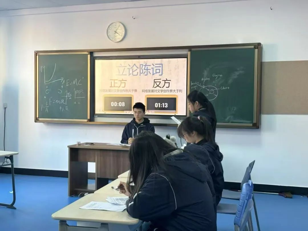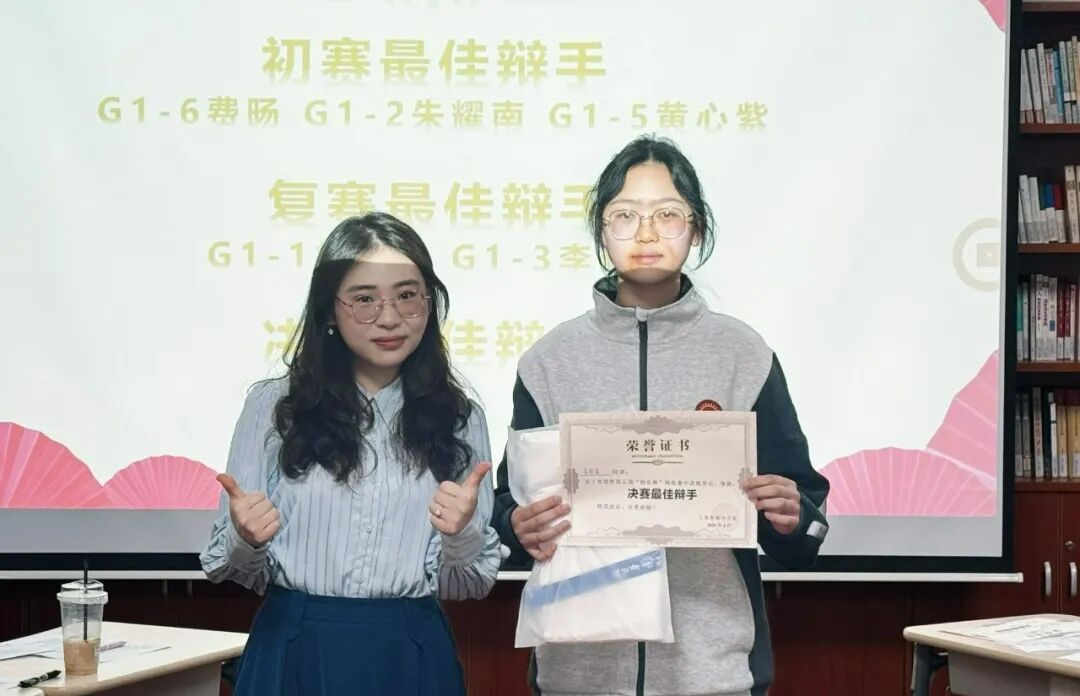 在一开始报名后我就后悔了,因为从未参加过这种活动,第一场比赛时,我紧张得连上楼梯腿都在发抖,准备了十多张稿子。在第二场比赛后老师提醒我们“辩论不是念稿子,而是表达自己的观点。”我这才反应过来。到了最后一场,虽然也准备了稿子,但当我真正开始聆听对方的观点并即时回应时,竟体验到一种前所未有的畅快。反而更流畅自然。尽管最终没拿到冠军,但这次经历让我突破了自己。从最初的胆怯到后来能自信表达,整个过程新鲜而又充满挑战,对我来说是一次很特别的成长。