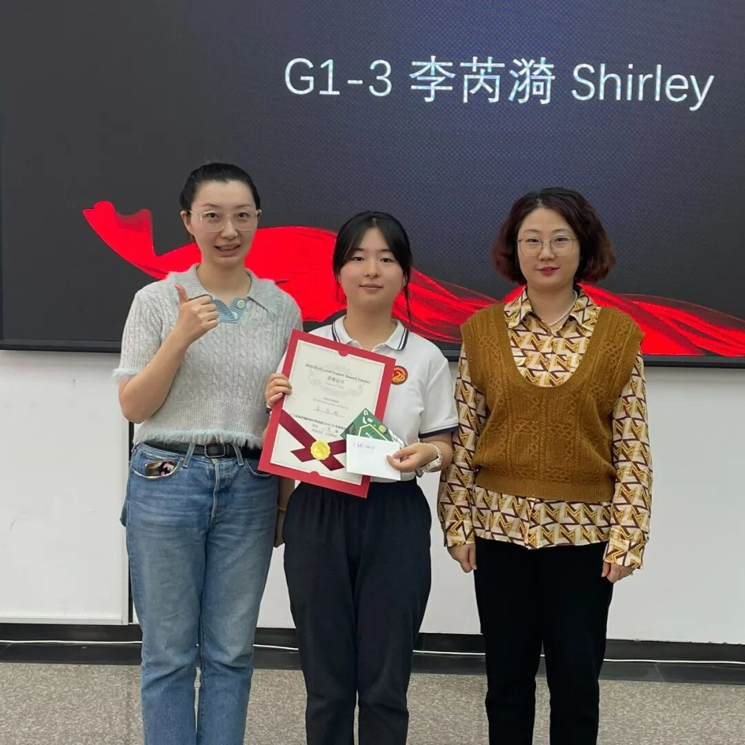 恭喜Ethan在这次上海地区ESDP演讲决选中荣获三等奖,为他感到骄傲!从主动报名参加年级比赛,到校内选拔赛全脱稿的精彩表现,不仅看到了他对于英文演讲的热情和重视,更欣赏他无畏挑战的勇气。四轮比赛时间紧、任务重,加之同时参与其他比赛的的压力,Ethan依然能够全力以赴,展现出沉着冷静和卓越的表现。勤勉、自律、优秀,希望这次比赛经历能够让Ethan更加自信,在未来的学习中充分发挥自己的潜能,勇敢追逐自己的目标与梦想!