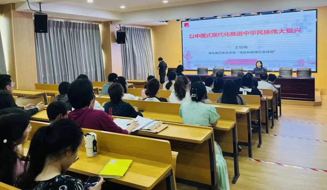 为促使教育工作者基层党员充分认识以中国式现代化对于推进中华民族伟大复兴的重要意义,深刻理解中国式现代化的内涵特征、本质要求、重大原则,6月1日下午3时,上海市浦东新区民办正达外国语小学党支部王枝梅书记于我校南区报告厅开展题为“以中国式现代化推进中华民族伟大复兴”的专题讲座。