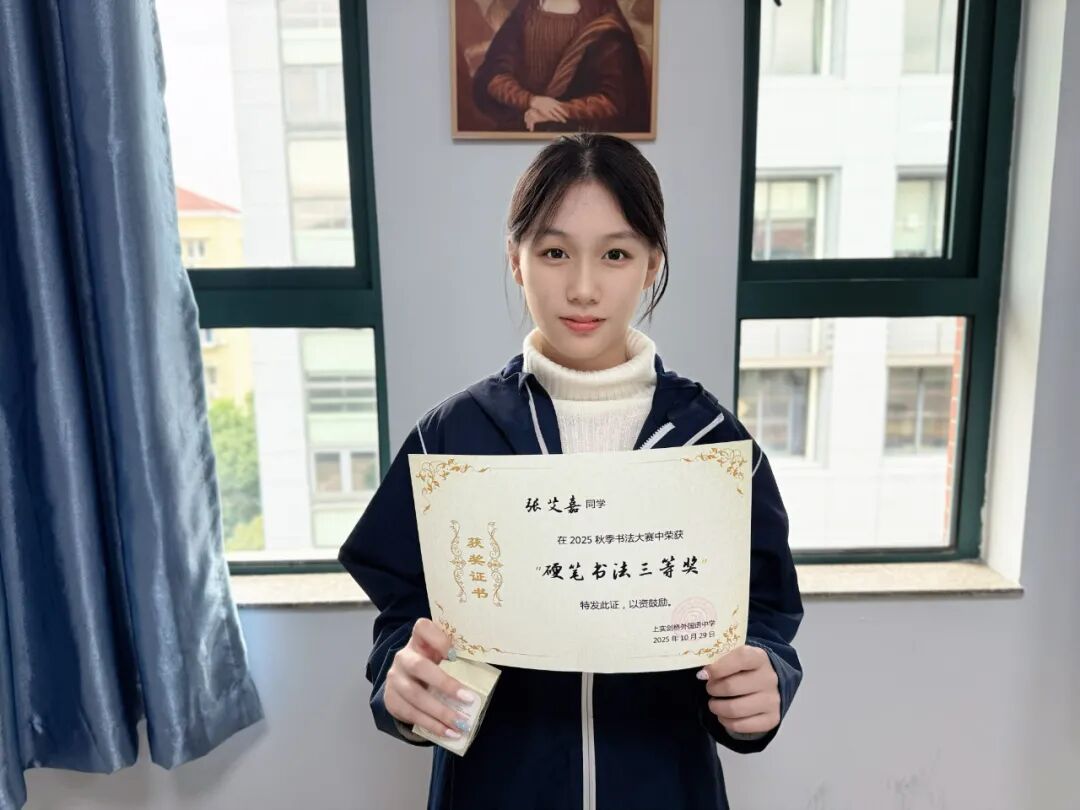 中文硬笔,笔锋刚劲,架构严谨;英文书写,流畅优雅,自带国际风度。10月14日举办的英语硬笔书写大赛现场,同学们以笔为桥,连接东西文明。字如其人,迹载其心。规范的书写不仅提升了学习品质,更在横竖撇捺间培养了审美能力,修炼了从容心境。参赛作品或工整清秀,或洒脱流畅,展现了同学们扎实的语言功底与独特的艺术个性,彰显上实学子立足传统、放眼世界的文化自信。