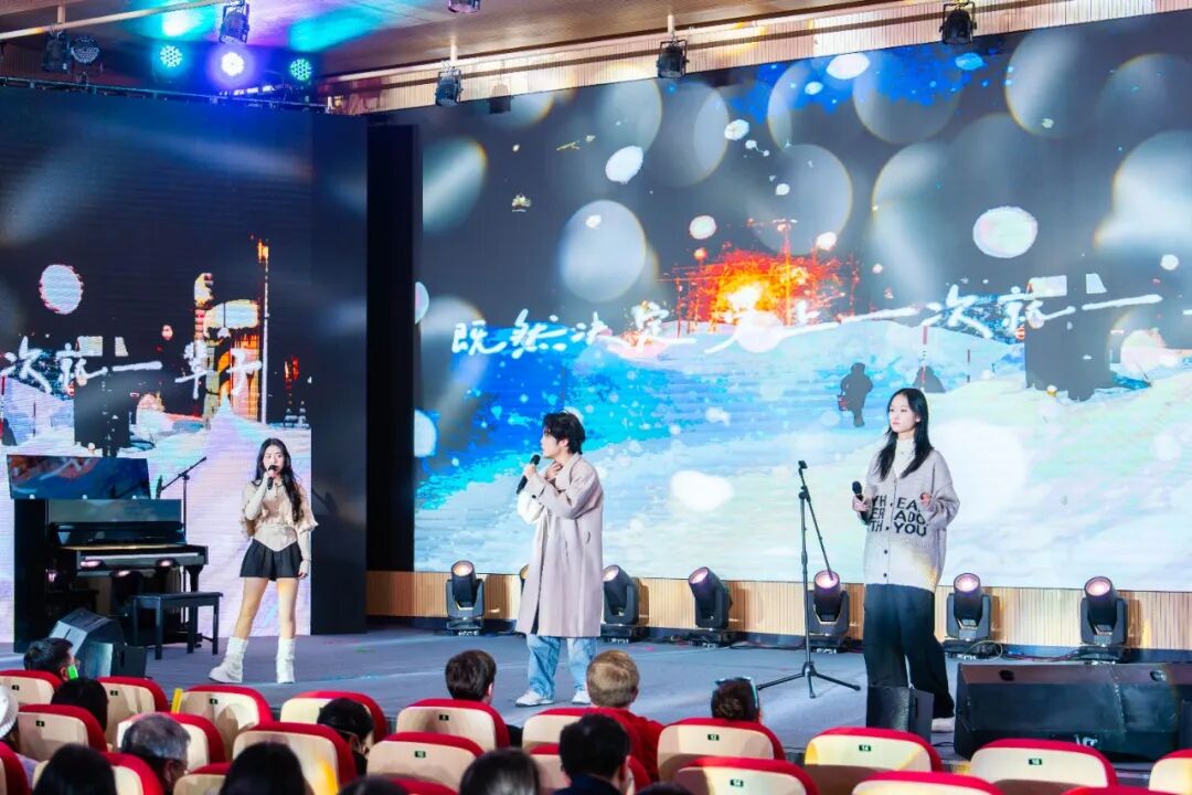 在特别的十二月,G1-1班的张圃睿同学以一曲钢琴合奏《圣诞快乐,劳伦斯先生》触动全场,冬日里的暖意仿佛在琴键中缓缓流淌。A2-4班的刘诺妍同学独唱一曲《Paper Hearts》,她细腻的嗓音将歌曲中脆弱而美丽的情绪娓娓道来。