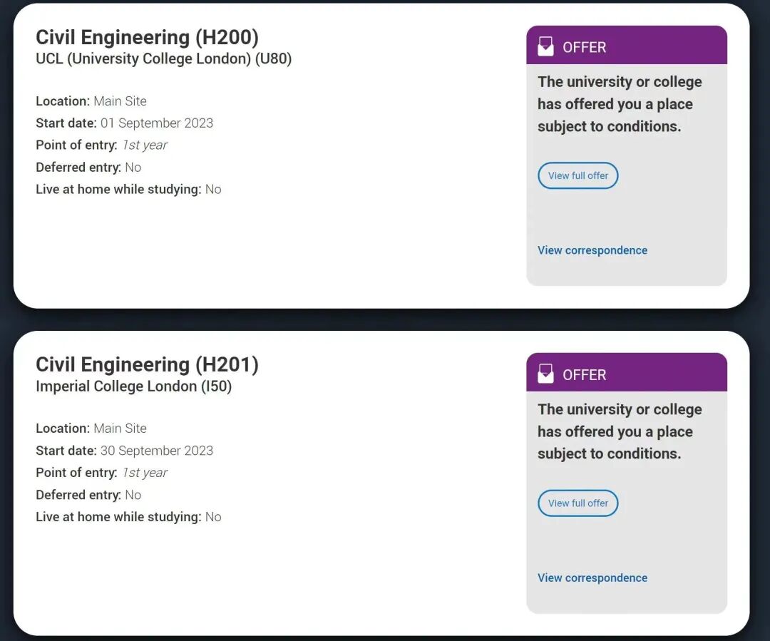 陶宇轩同学是在12月底收到的帝国理工大学面邀,当时正值疫情最严重的时候,因此准备得也比较仓促。万幸的是,面试中陶同学利用自己长期以来看纪录片时在建筑方面的知识积累,答出了一些有一定难度的问题。经过漫长的三个多月的等待,陶宇轩同学在今年三月中旬拿到了IC的预录取通知书。